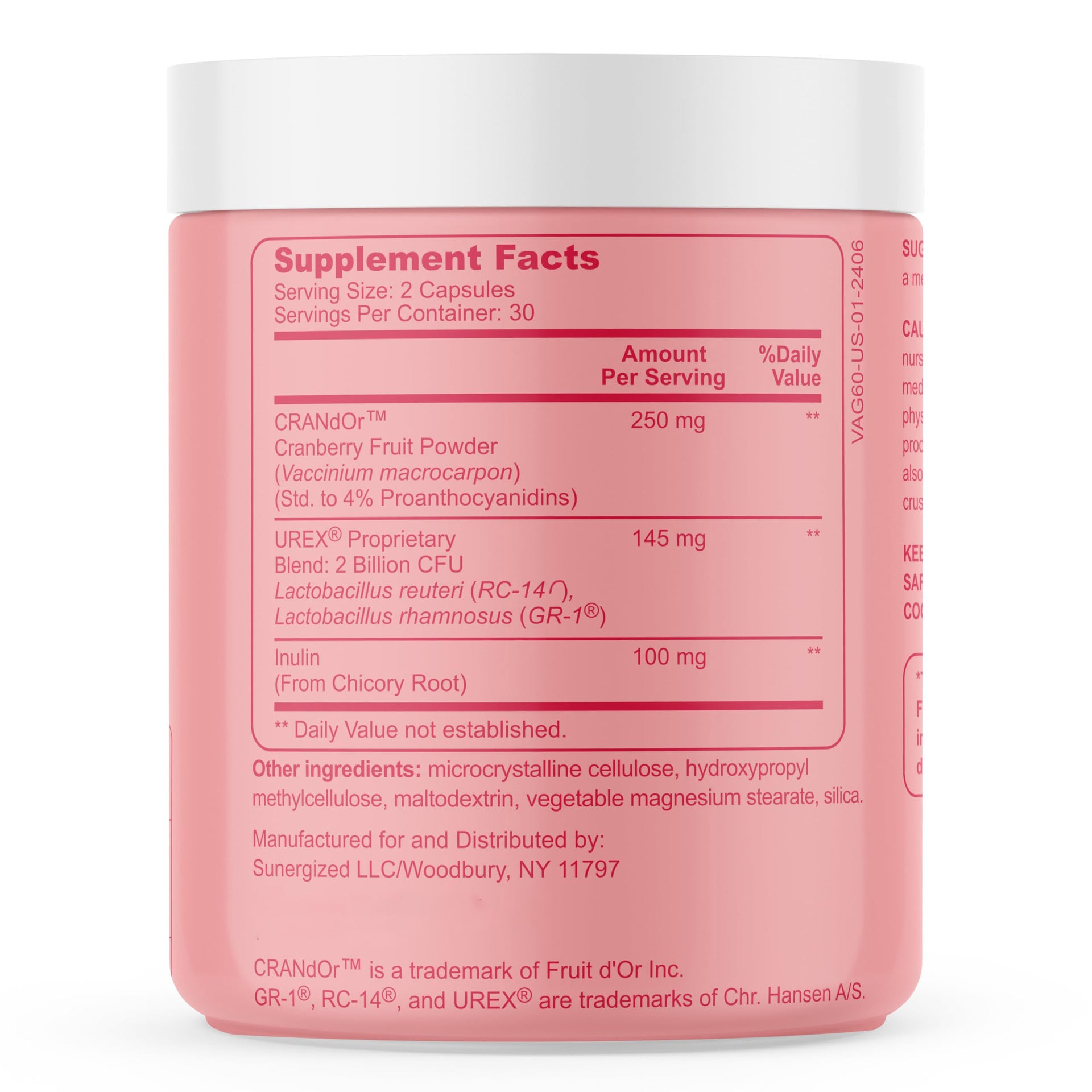 Salud íntima avanzada: fórmula con probióticos clínicamente estudiados (UREX®) y prebióticos para equilibrar la flora vaginal y apoyar el bienestar urogenital.