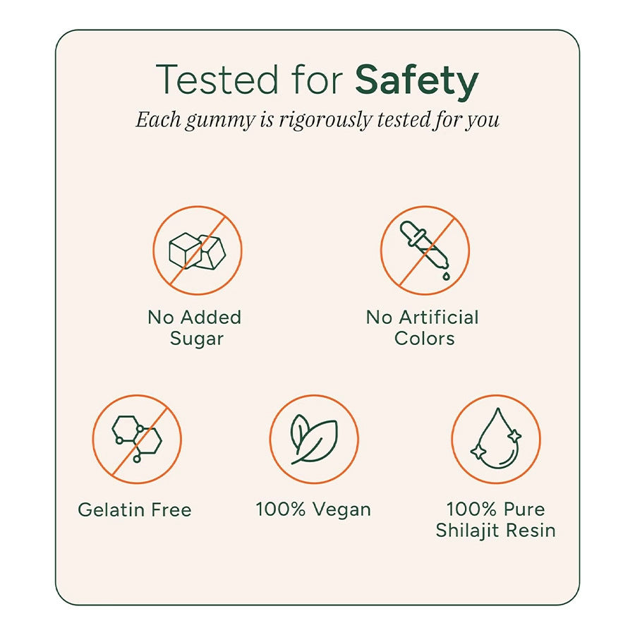 Calidad premium: 100% vegano, libre de gelatina, con resina auténtica de Shilajit y seguridad testada en laboratorio.